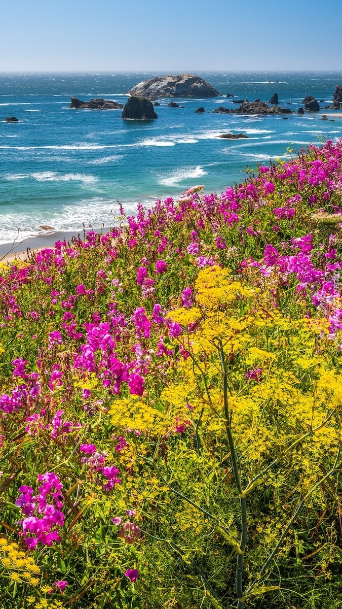 Edytor tapety: Kwiaty na wzgórzu nad morzem