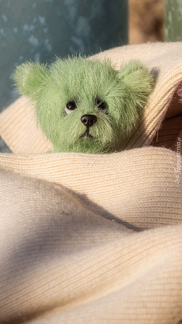 Edytor tapety: Zielony miś w szaliku