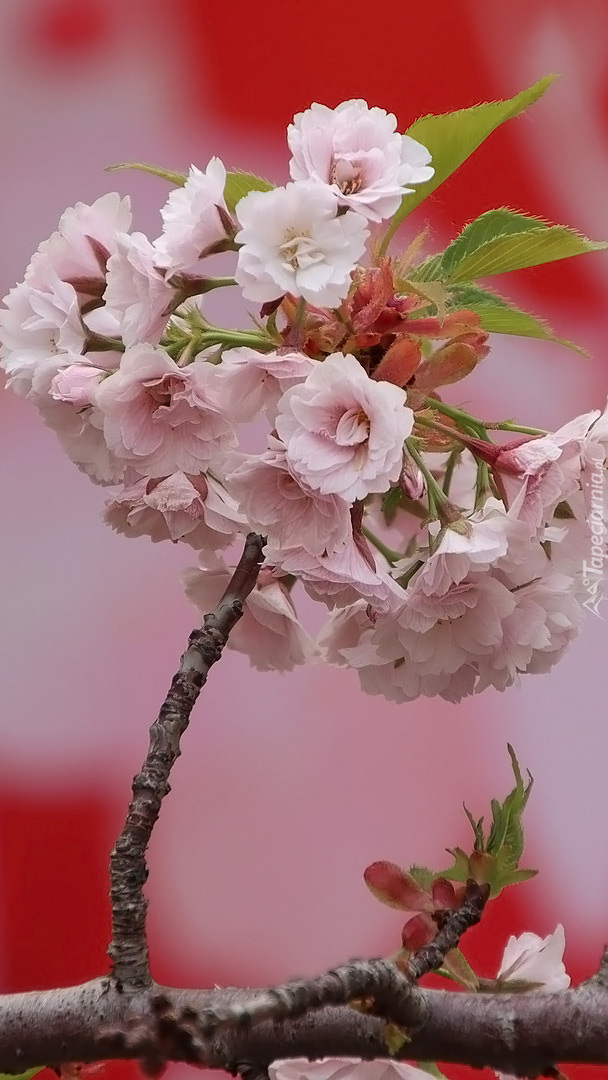 Edytor tapety: Kwiaty wiśni japońskiej na gałązce