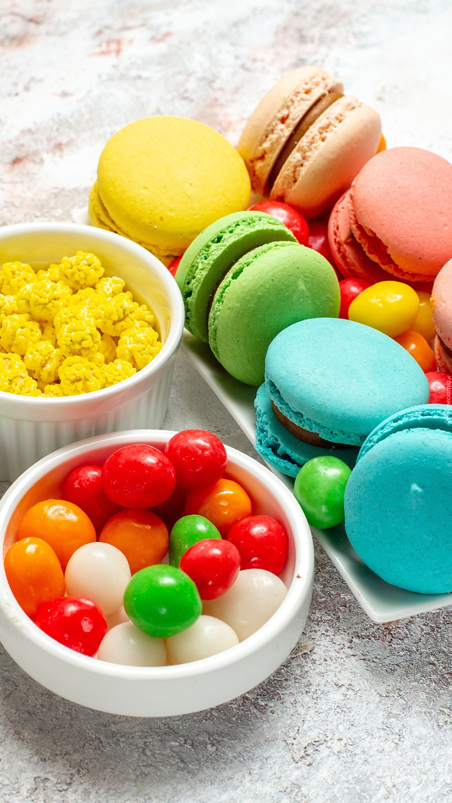 Edytor tapety: Makaroniki i słodycze w miseczkach