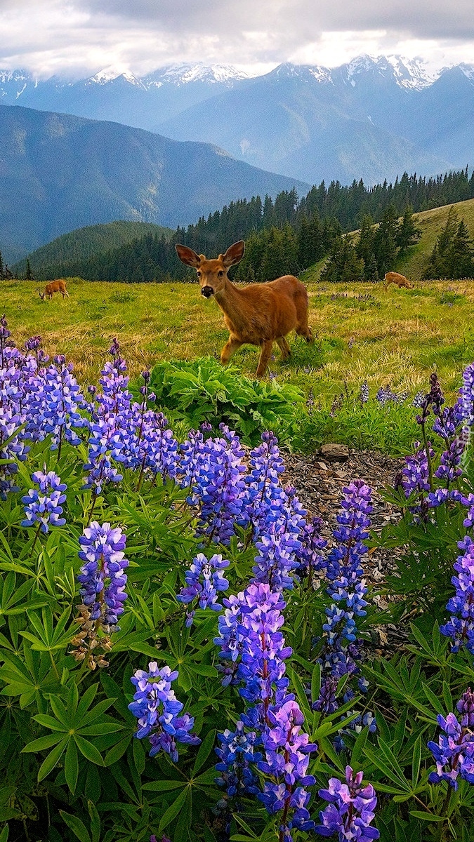 Edytor tapety: Sarna przy łubinach na łące