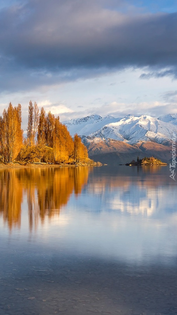 Edytor tapety: Jesienne drzewa nad jeziorem Wanaka