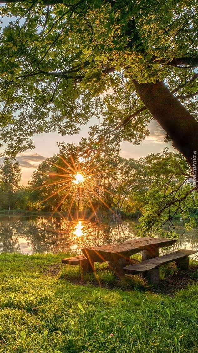Edytor tapety: Stół z ławkami pod drzewem