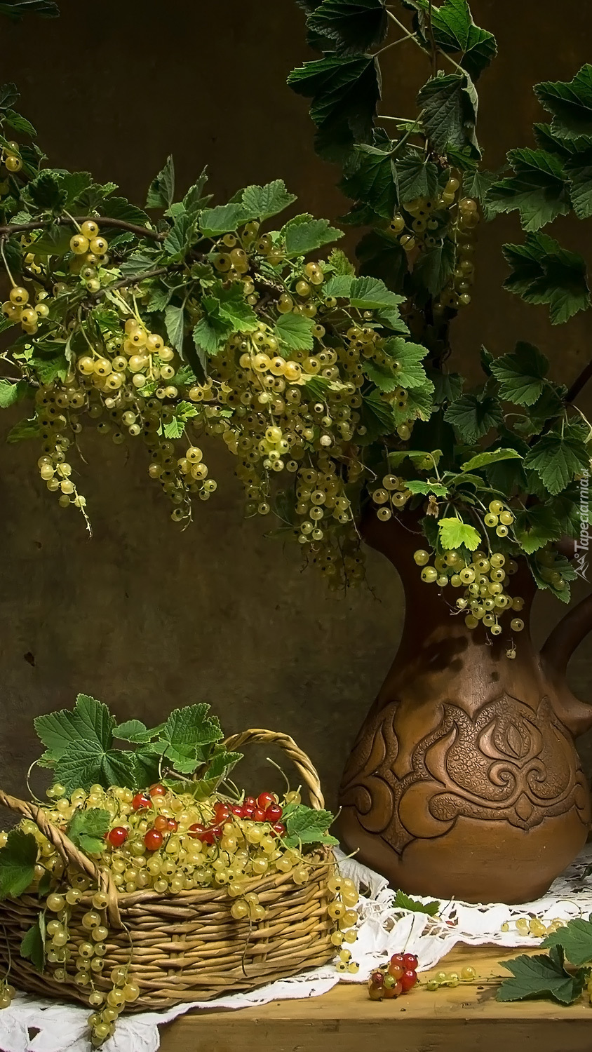 Edytor tapety: Porzeczki w wazonie na stole