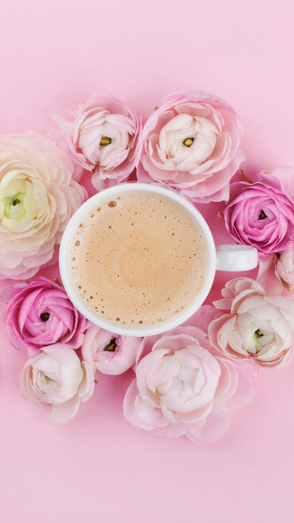 Edytor tapety: Kubek cappuccino otoczony jaskrami