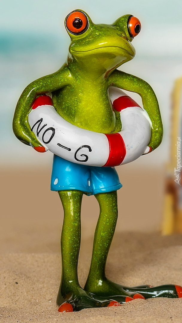 Edytor tapety: Figurka żaby z kołem ratunkowym