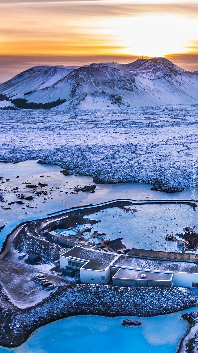 Edytor tapety: Ośnieżone budynki w górach