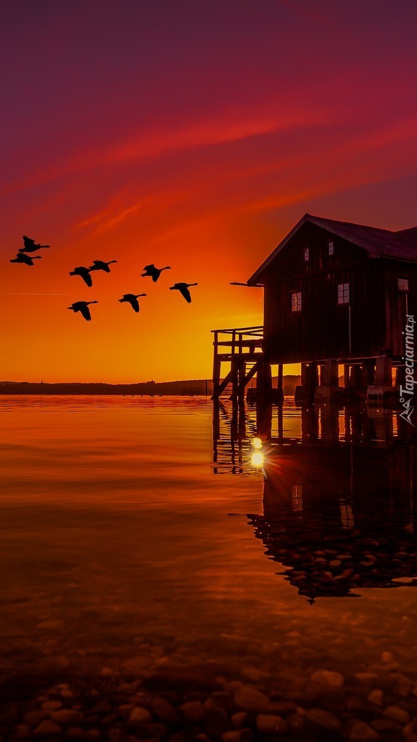 Edytor tapety: Dom na pomoście nad jeziorem