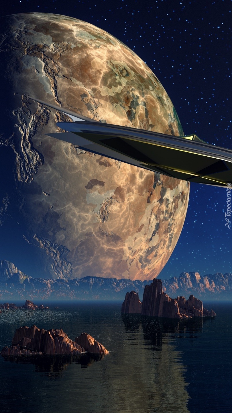 Edytor tapety: Statek kosmiczny i planeta w grafice