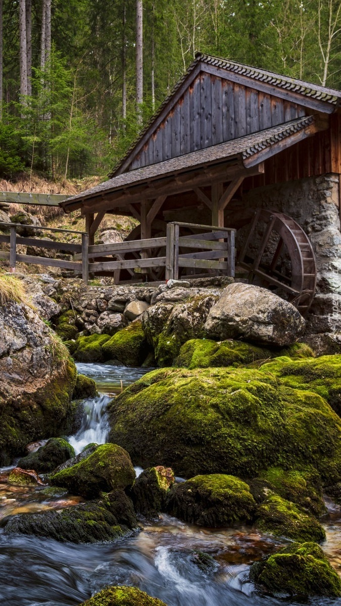 Edytor tapety: Młyn wodny w lesie