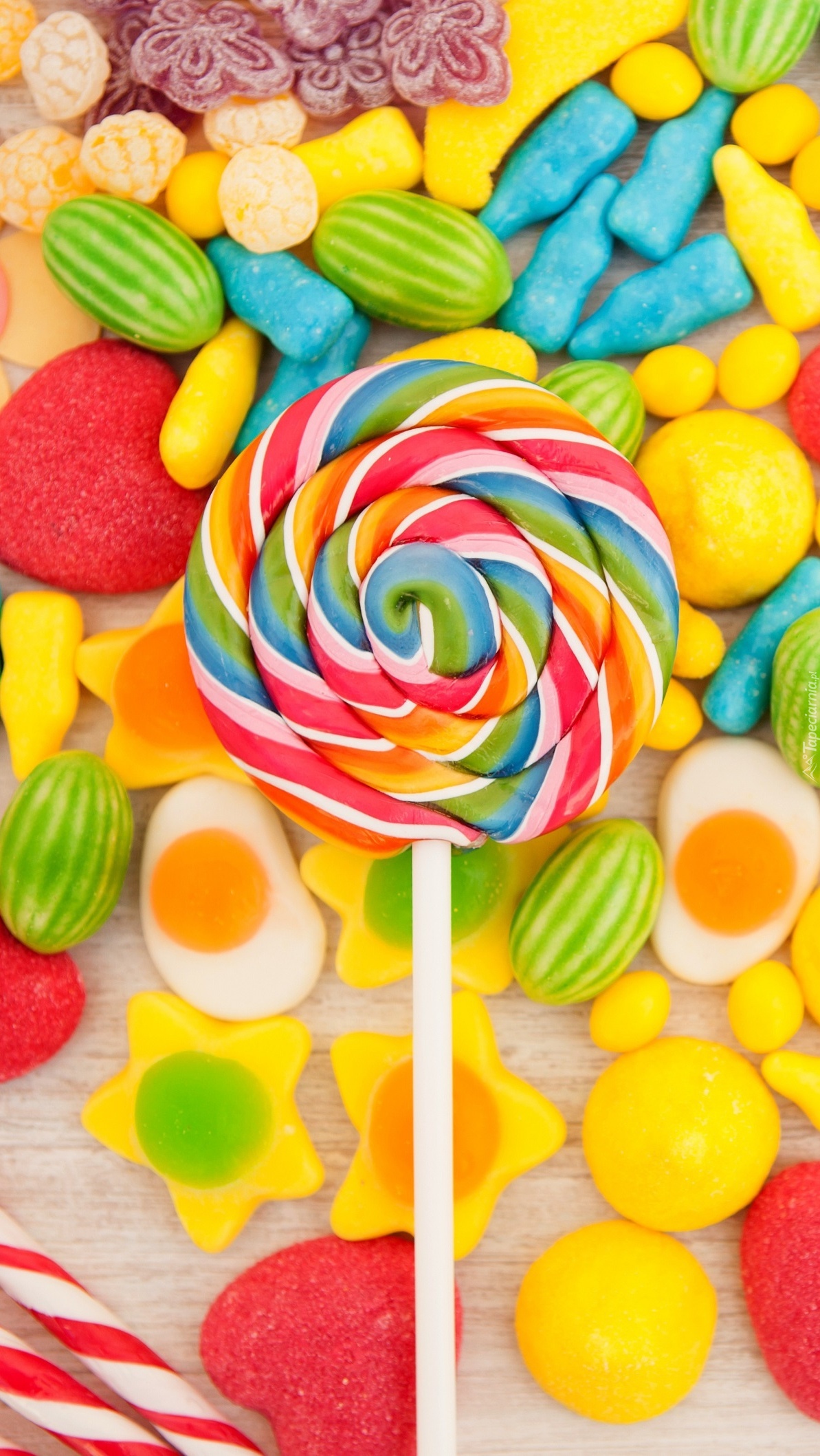 Edytor tapety: Lizak na kolorowych cukierkach