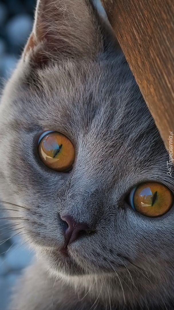 Edytor tapety: Kot brytyjski krótkowłosy patrzący zza deski