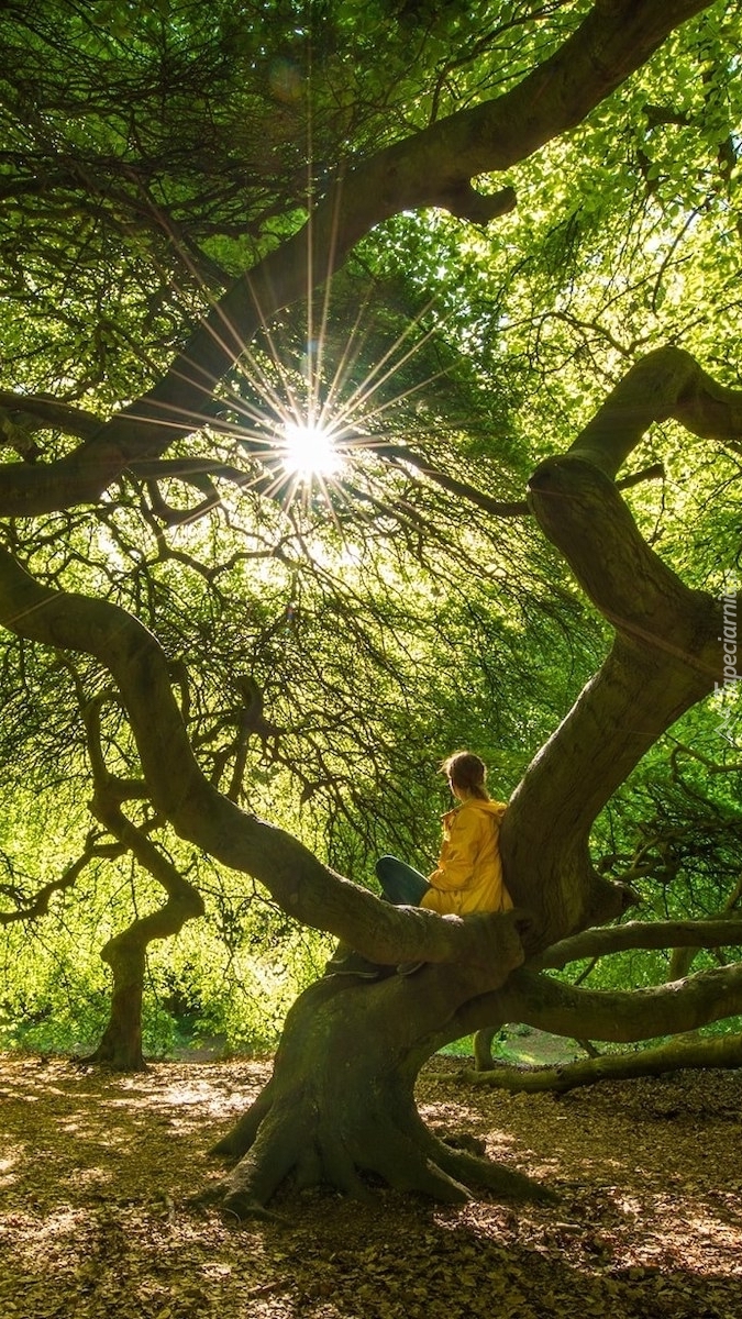 Edytor tapety: Kobieta siedząca na drzewie