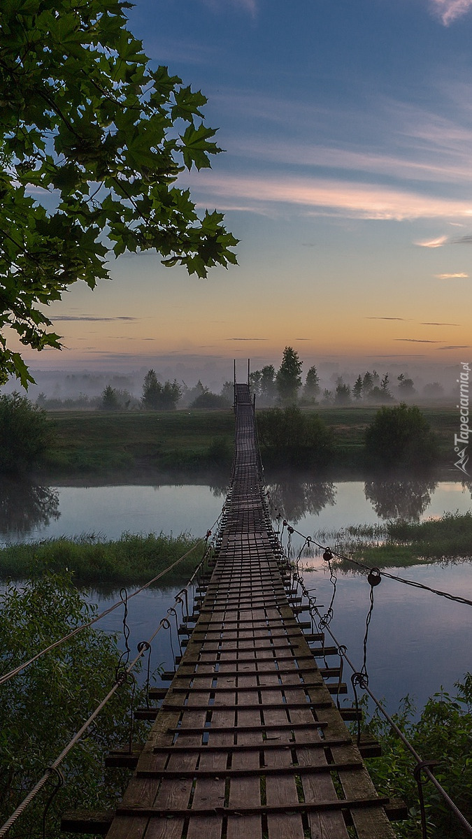 Edytor tapety: Wiszący drewniany most nad rzeką