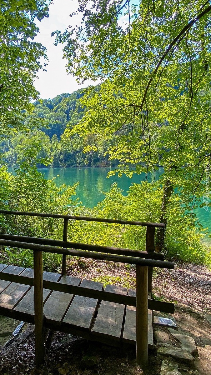 Edytor tapety: Drewniany mostek obok jeziora