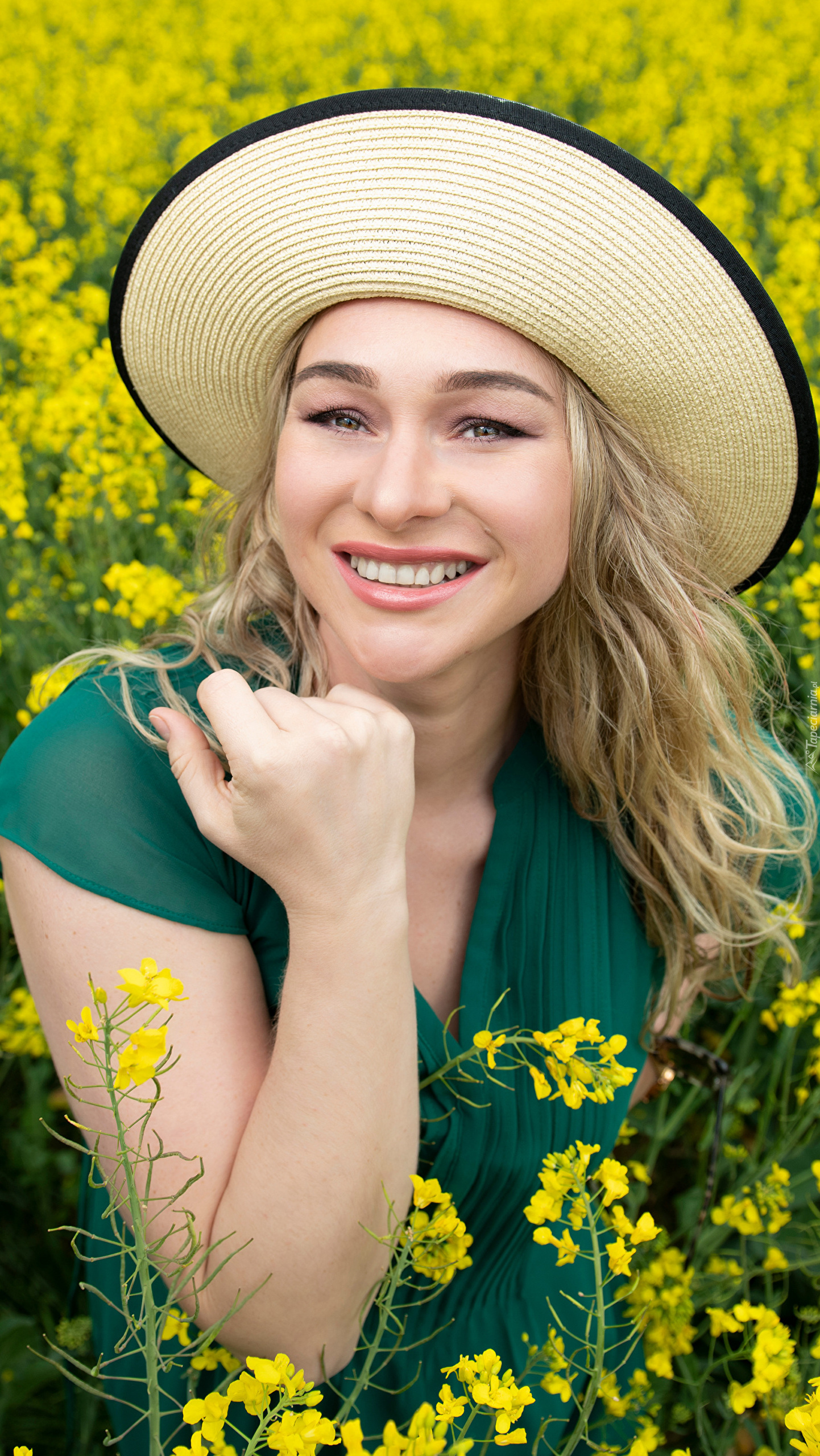Edytor tapety: Blondynka na polu rzepaku