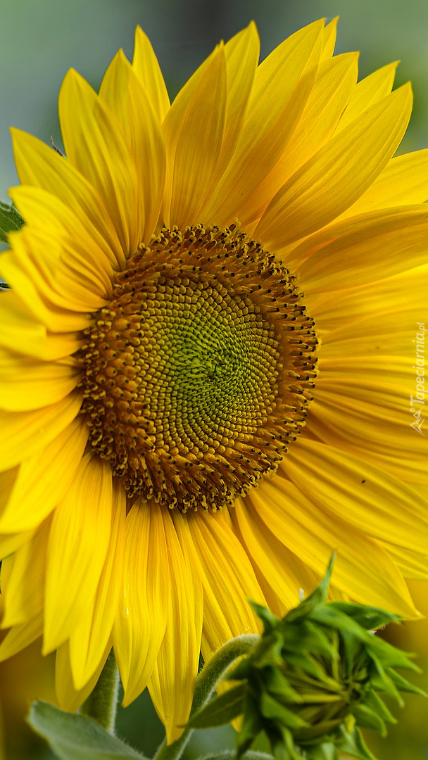 Edytor tapety: Rozkwitnięty słonecznik z pąkiem