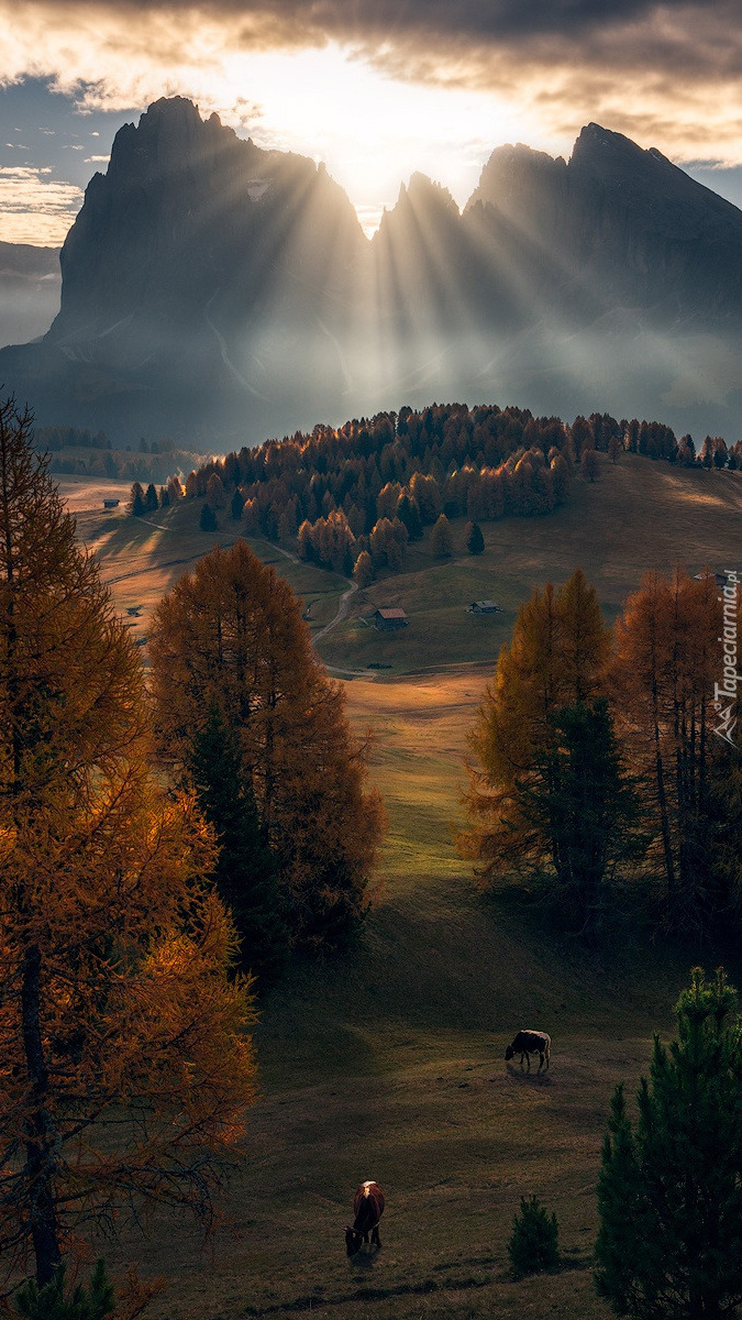 Edytor tapety: Promienie słońca nad Dolomitami