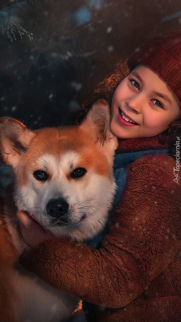 Edytor tapety: Dziewczynka i pies shiba inu