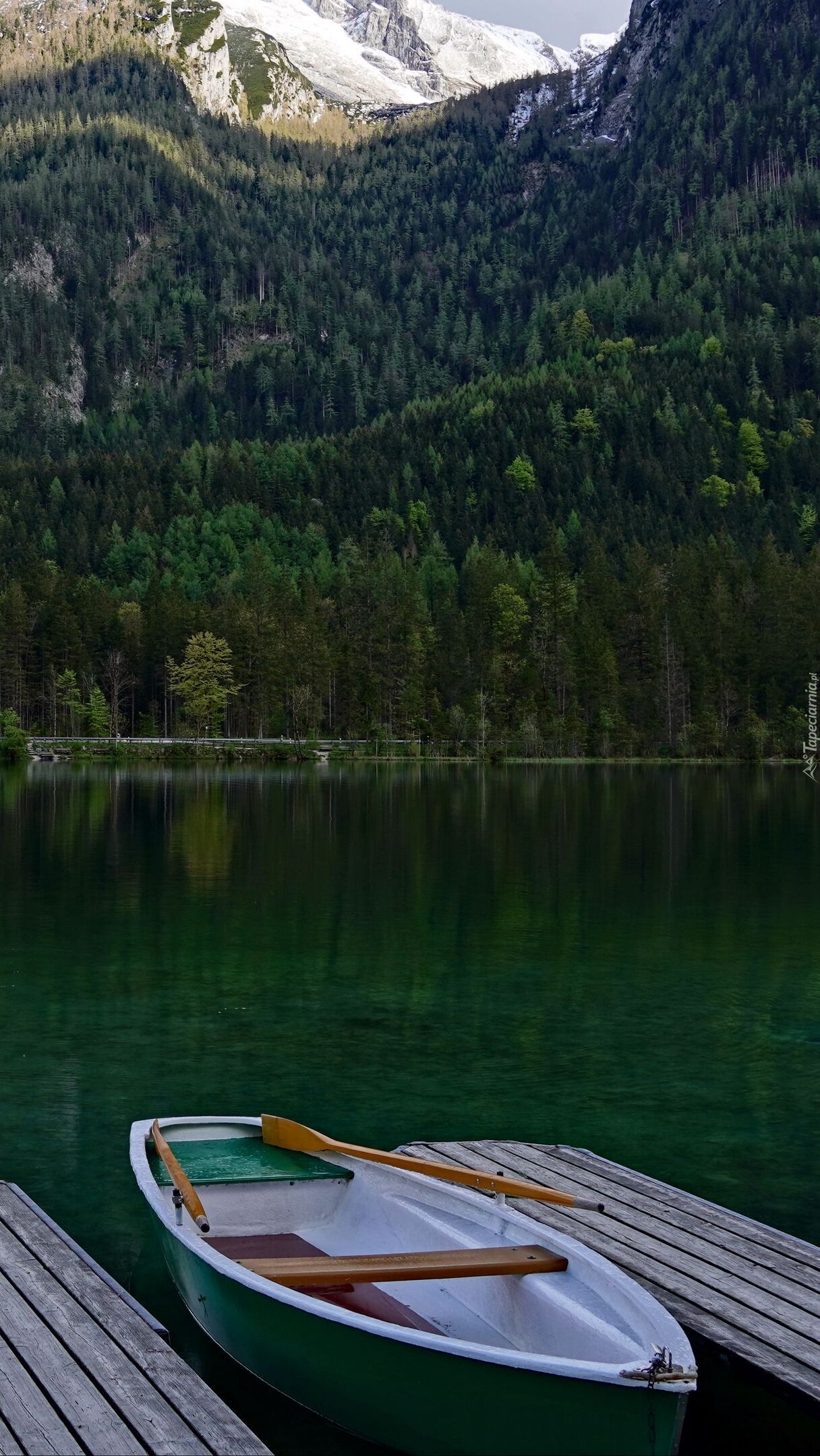 Edytor tapety: Pomost i łódka na jeziorze