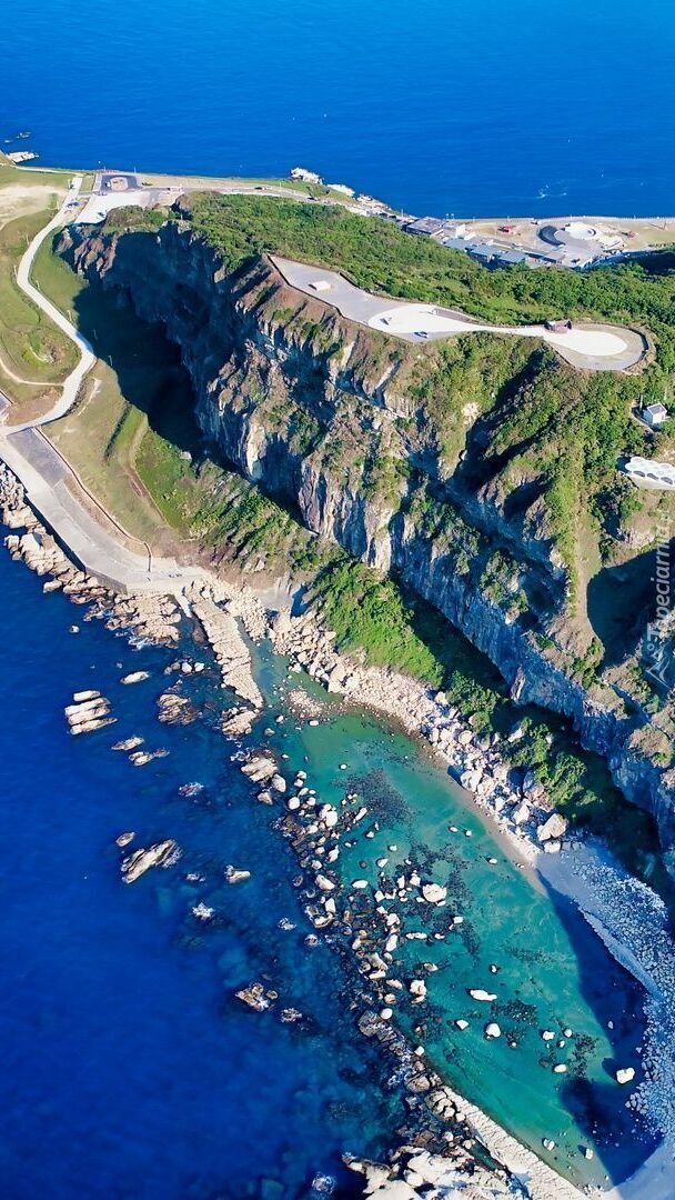Edytor tapety: Góry nad morzem z lotu ptaka