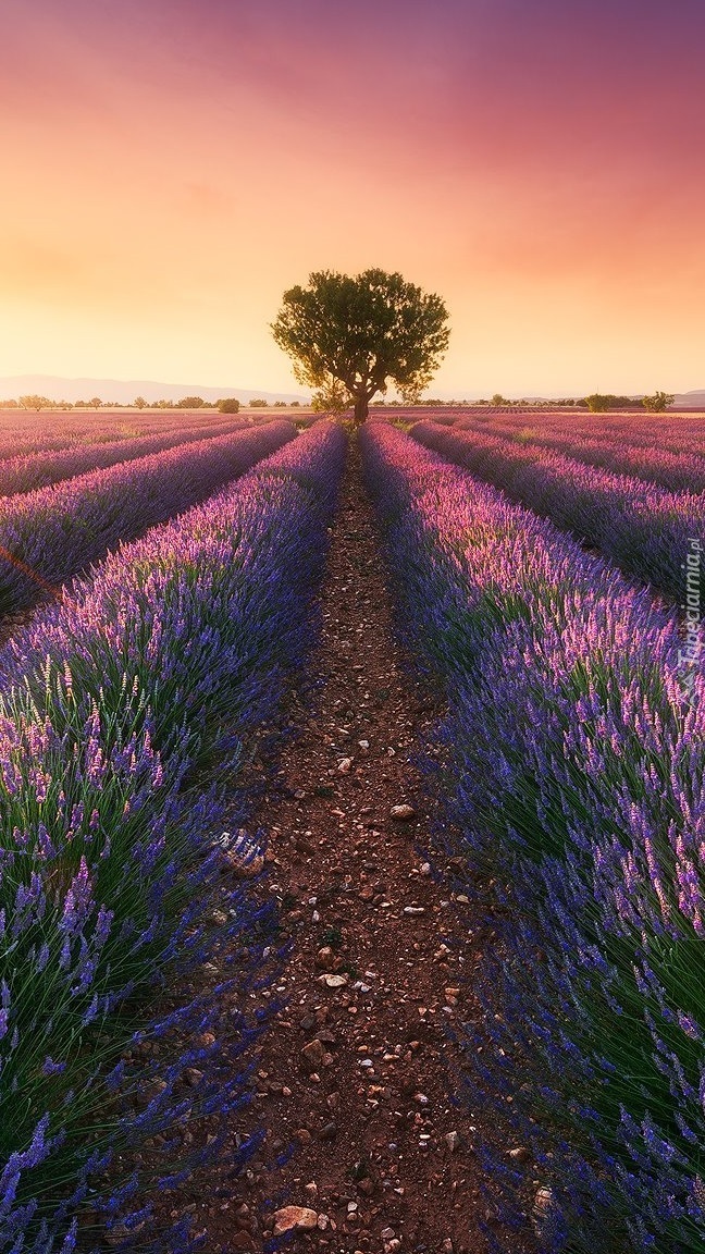 Edytor tapety: Drzewo na polu lawendy