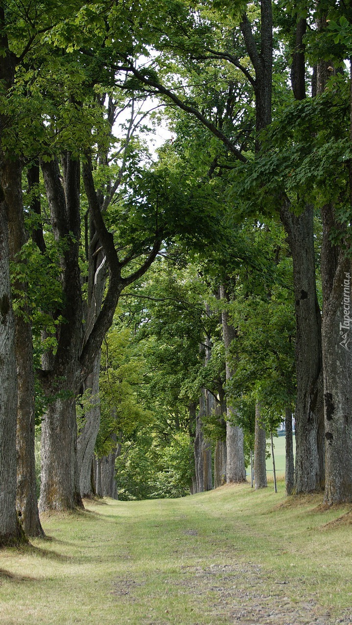 Edytor tapety: Ścieżka wzdłuż zielonych drzew