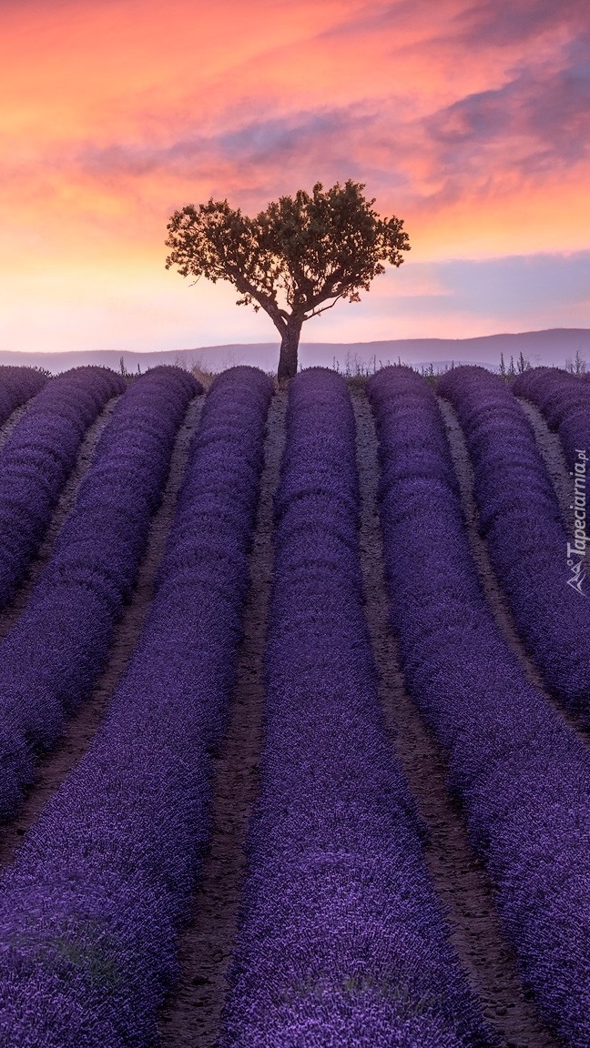 Edytor tapety: Drzewo na polu lawendy