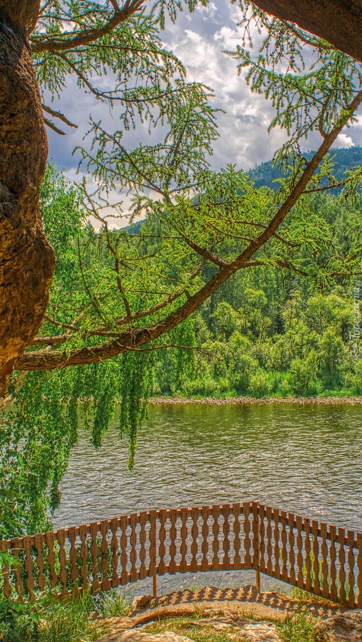 Edytor tapety: Drzewa rosnące nad rzeką