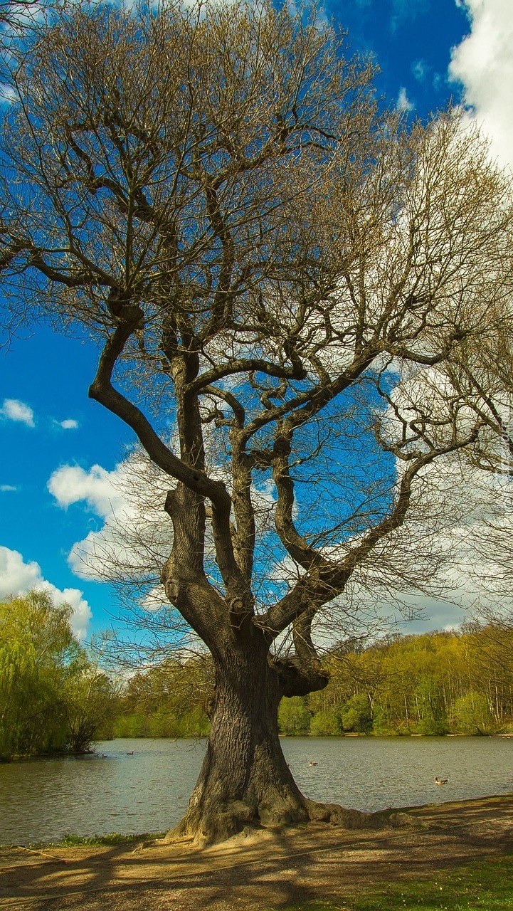 Edytor tapety: Drzewo nad brzegu jeziora