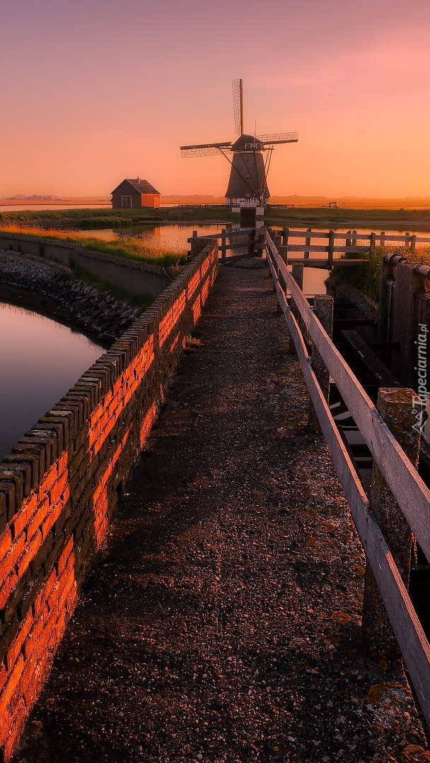 Edytor tapety: Most i wiatrak nad kanałem