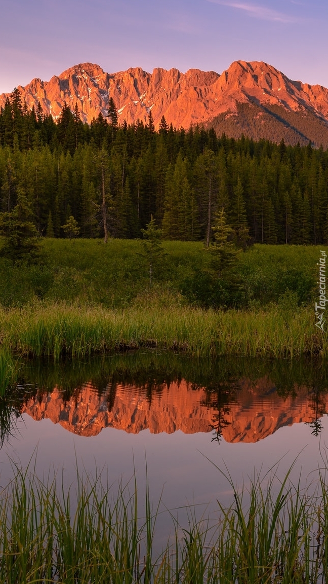 Edytor tapety: Odbicie rozświetlonych gór w stawie