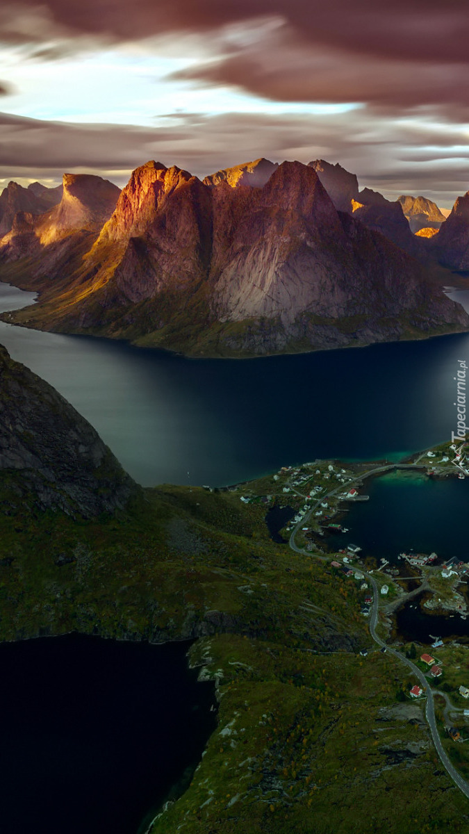 Edytor tapety: Rozświetlone szczyty na Lofotach