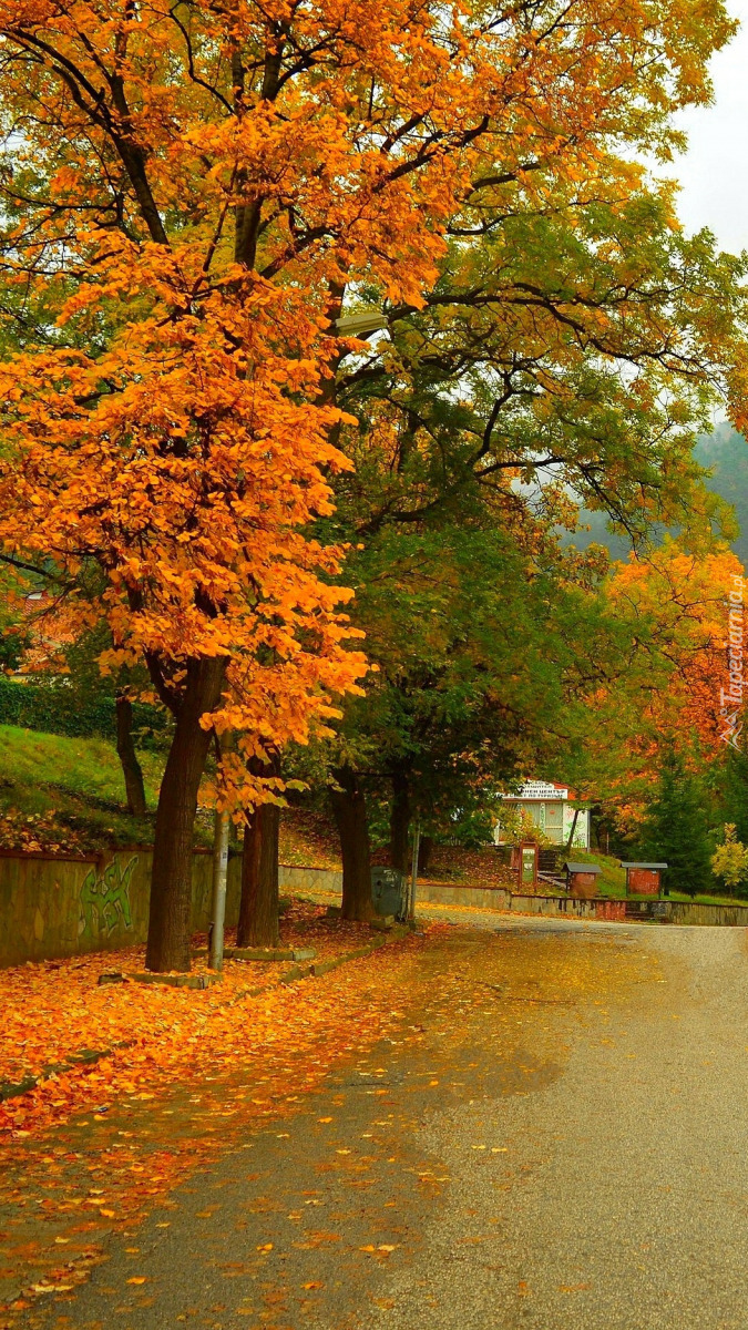 Edytor tapety: Jesienne drzewa na chodniku