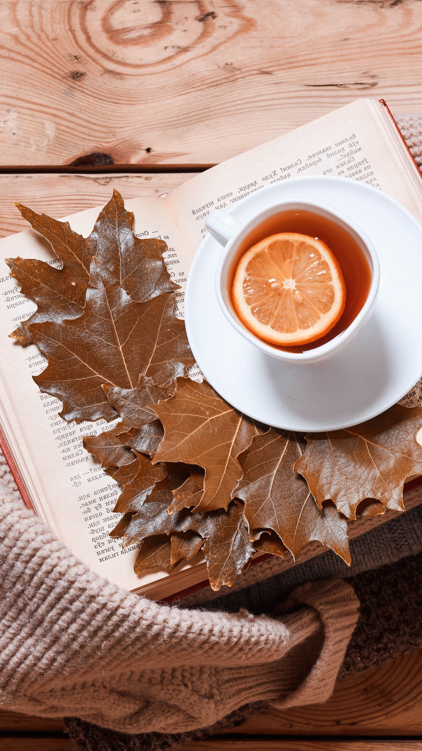 Edytor tapety: Herbata z cytryną na książce