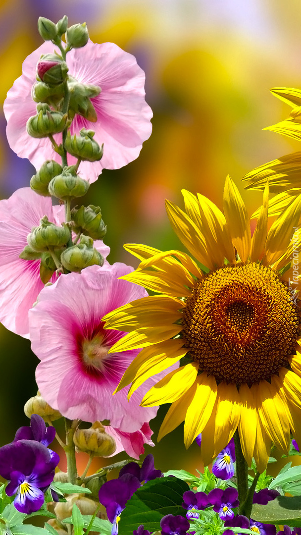 Edytor tapety: Słonecznik i malwy w grafice