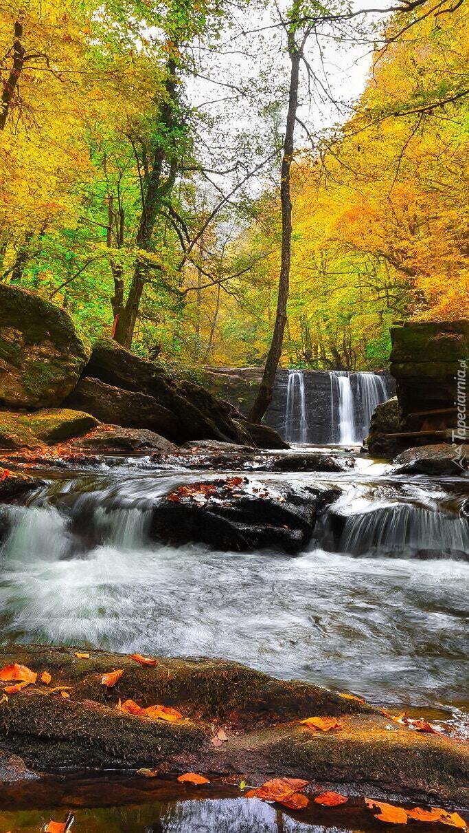 Edytor tapety: Jesienne drzewa przy leśnym potoku