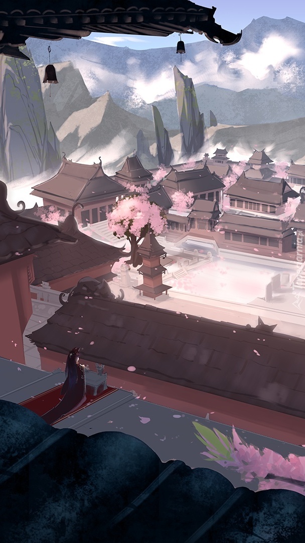 Edytor tapety: Świątynia i góry w grafice