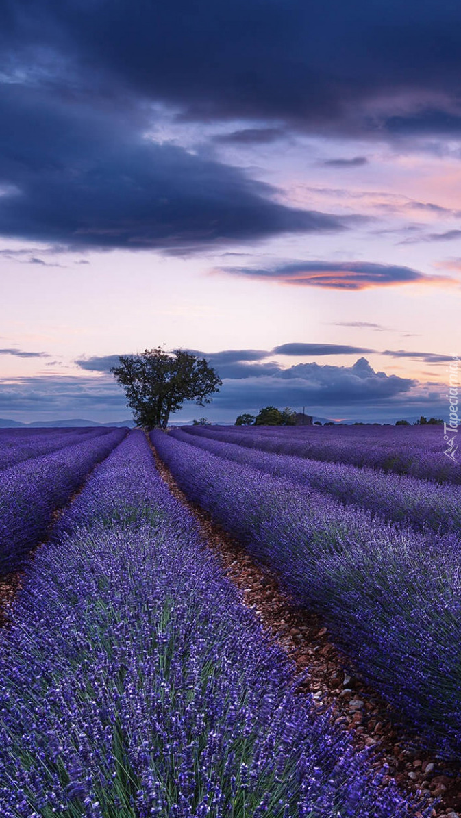 Edytor tapety: Drzewa na polu lawendy