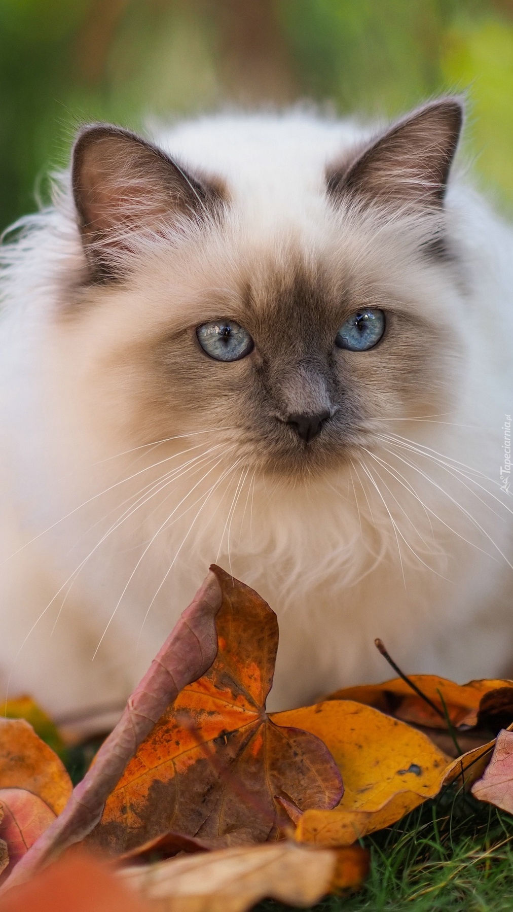 Edytor tapety: Ragdoll w liściach
