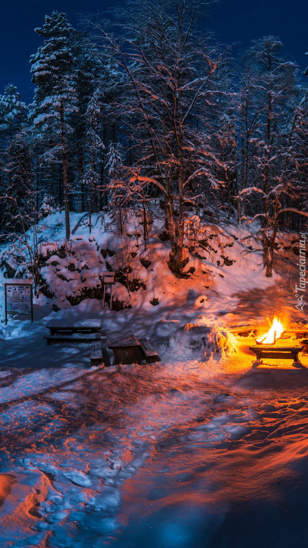 Edytor tapety: Ognisko w zimowej scenerii