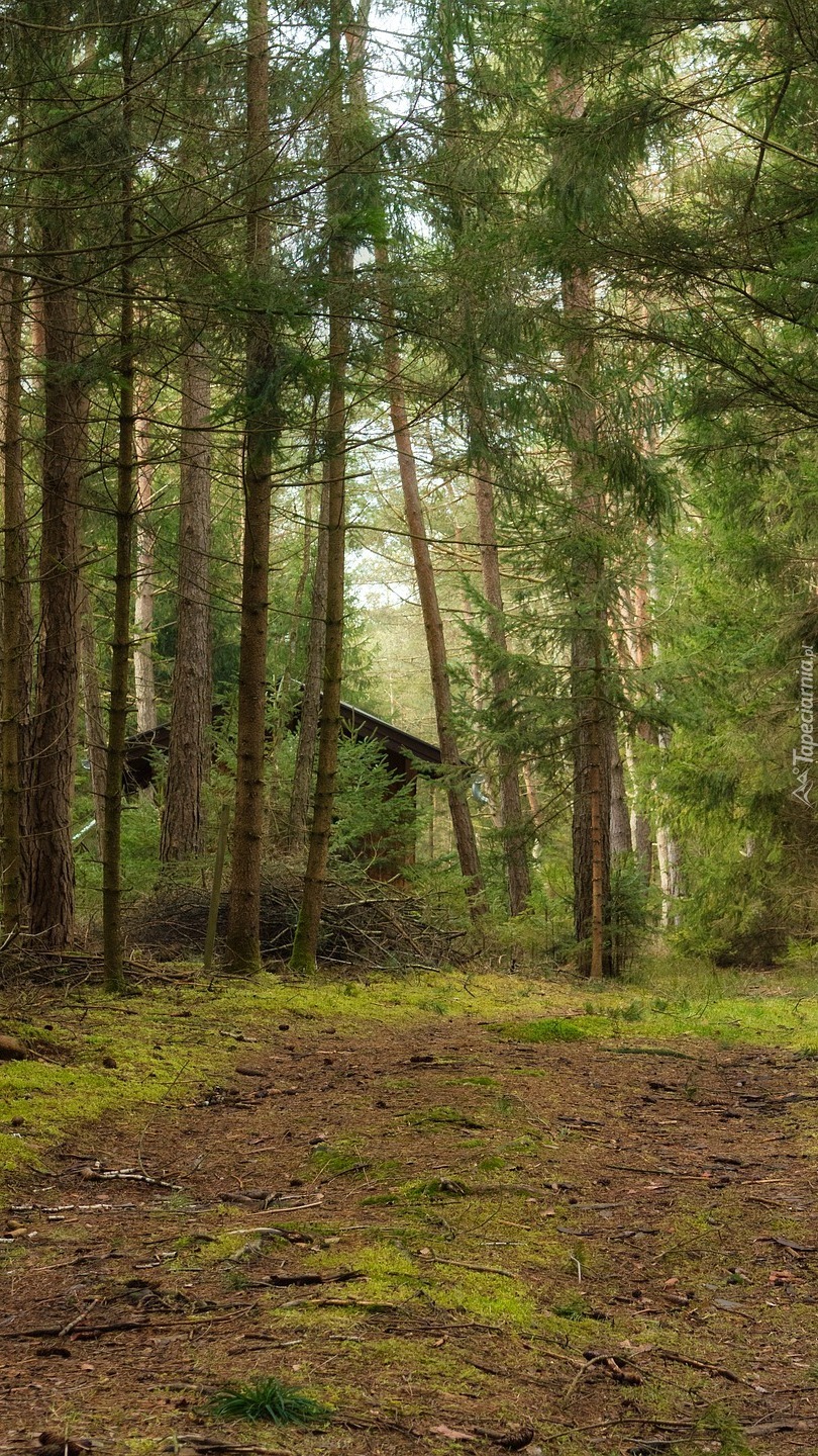 Edytor tapety: Dom za drzewami w lesie