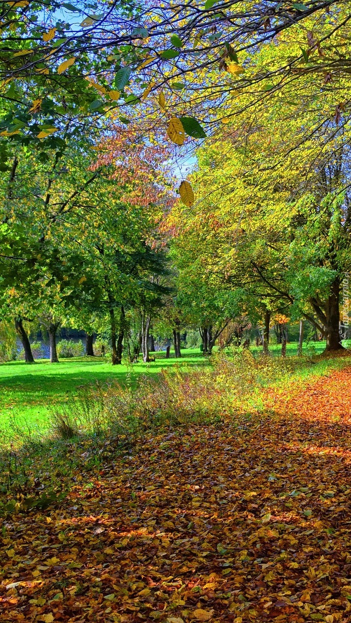 Edytor tapety: Opadłe liście w parku