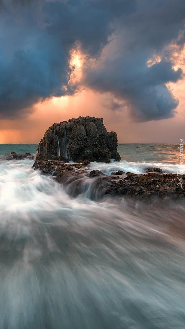 Edytor tapety: Fale rozbijające się o skałę