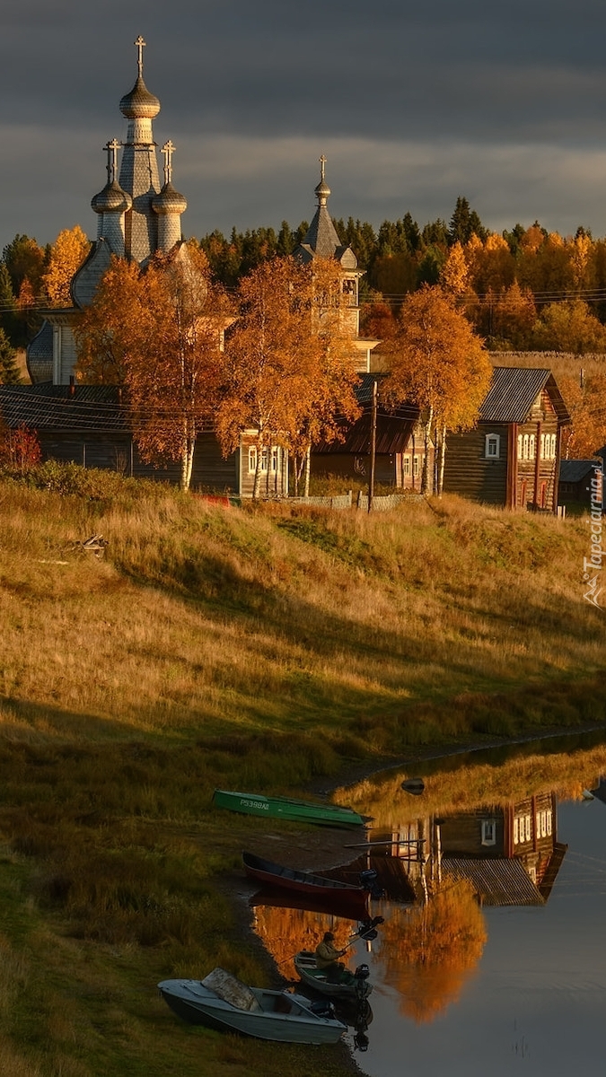 Edytor tapety: Cerkiew i domy we wsi Kimzha