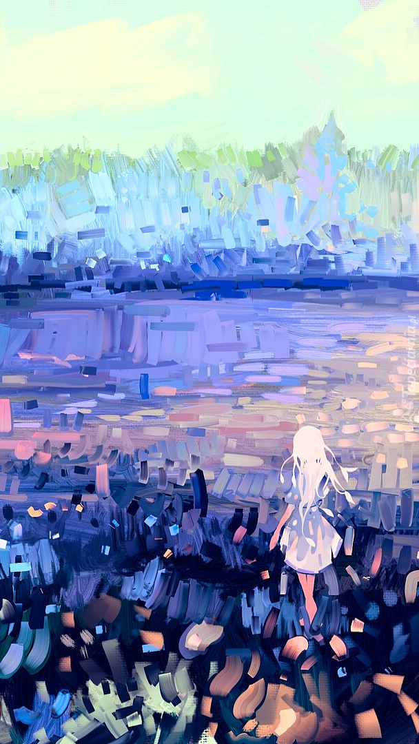 Edytor tapety: Dziewczyna nad rzeką w grafice