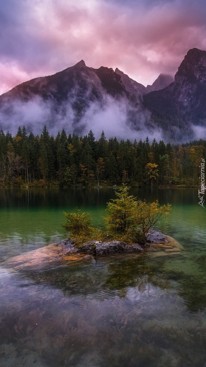 Edytor tapety: Skalna wysepka na górski jeziorze