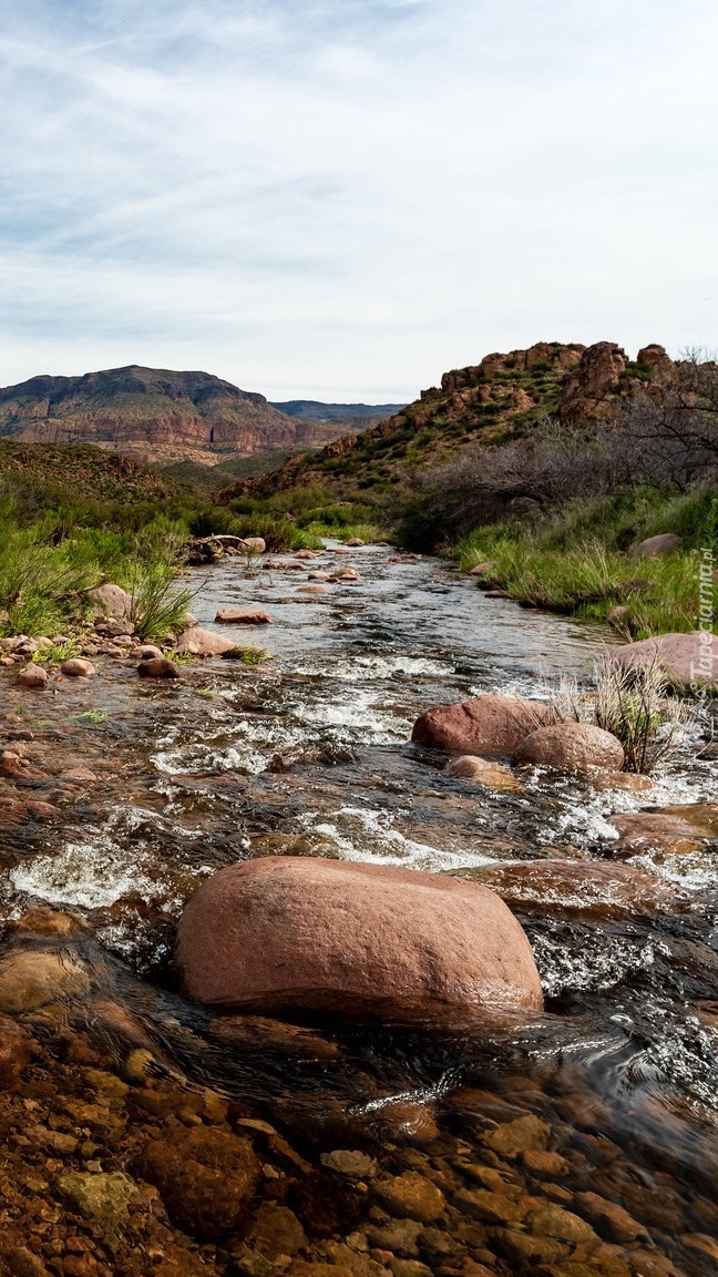 Edytor tapety: Kamienisty potok na tle gór
