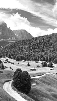 Edytor tapety: Domy w górskiej dolinie
