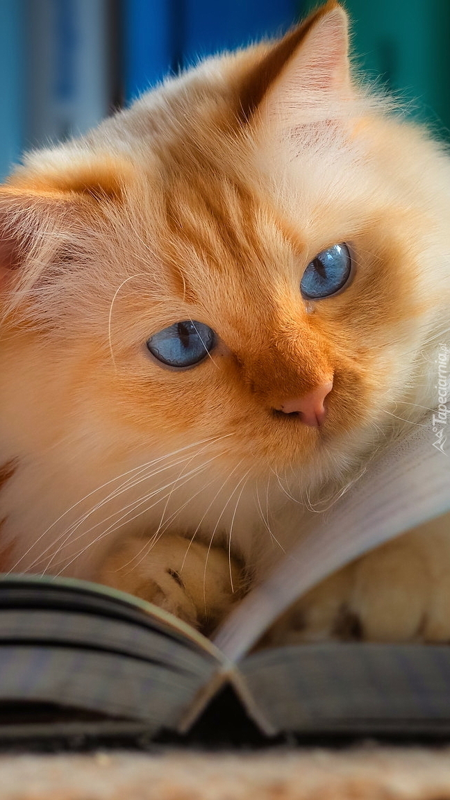 Edytor tapety: Rudawy kot nad książką